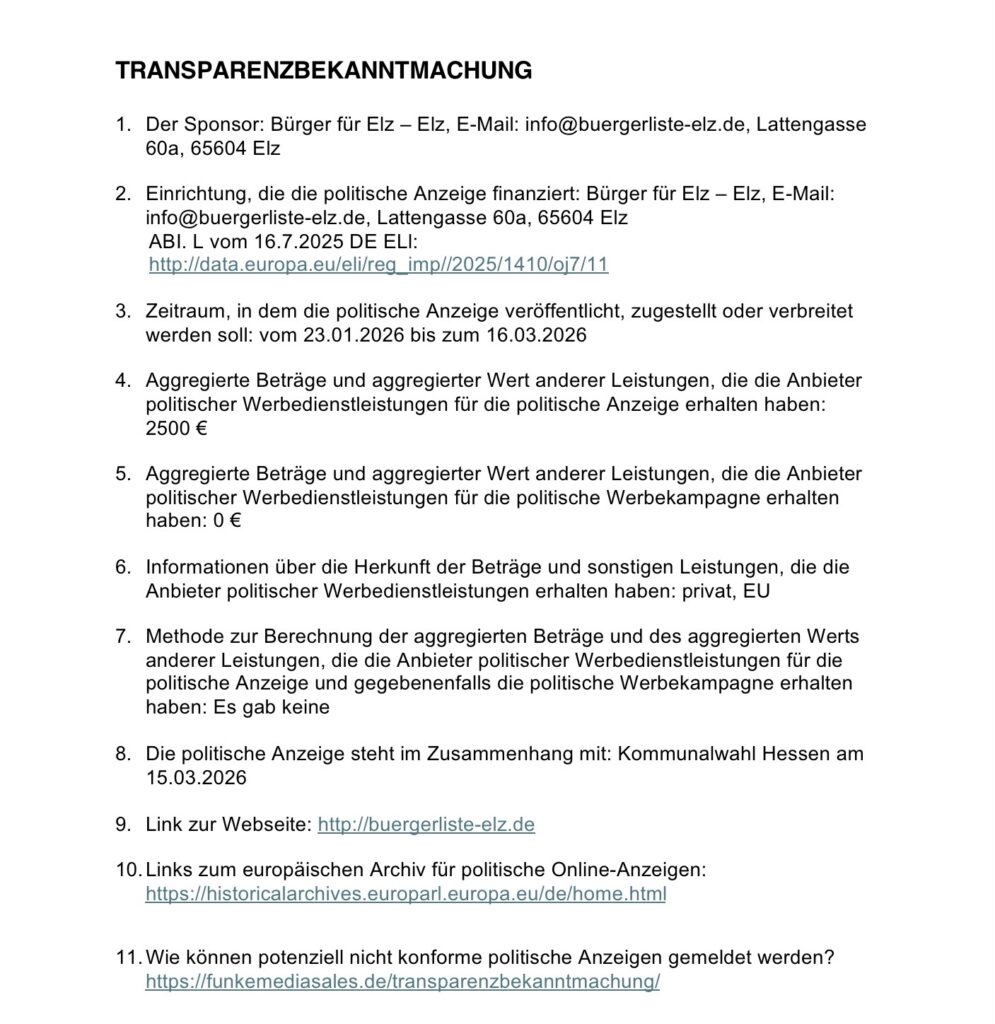 Offener Brief an den Elzer Bürgermeister